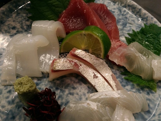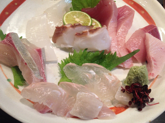 刺し身の盛り合わせ 穴子焼き霜のせ