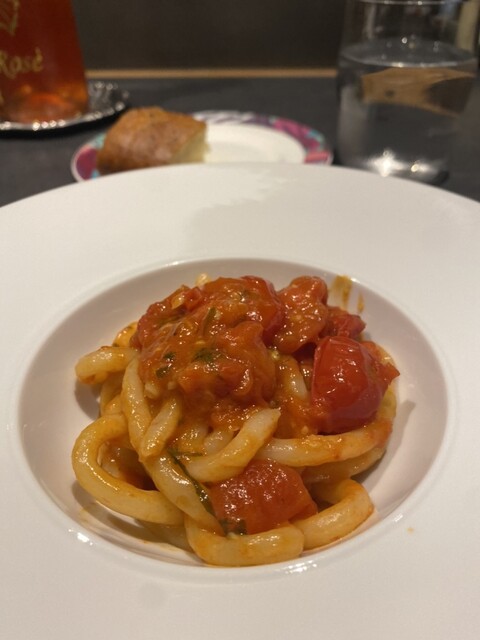 まず最初は甘いオリーブとドライトマトのおつまみを食べながら時間調整。コースと違うので、自分の食べたいものだけ選べるし、パスタをメインの前にするか後にするかの順番も相談できた。