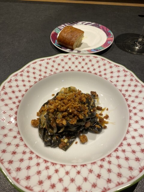 まずですね。温かいおしぼりがレモングラスの香りで、いきなり感じがいい。仏文科の女子学生のような子リス系美人ソムリエールがメニューの仕組みを教えてくれる。基本コースになっているが、メインとパスタは選べるタイプね。えーとパスタが締めになってる最近流行りの流れ。パスタはデフォルトで2皿。お好みとあらば2皿と言わず4皿食べようが5皿食べようが自由。おー、憧れのリストランテレベルのパスタを次々食べれるドリームパスタランドがここにも!