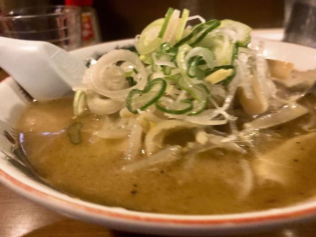 今回は“油濃いめ”でお願いしたが、焦がしラードが表面にびっしりと浮かび、香ばしさとパンチが段違い。