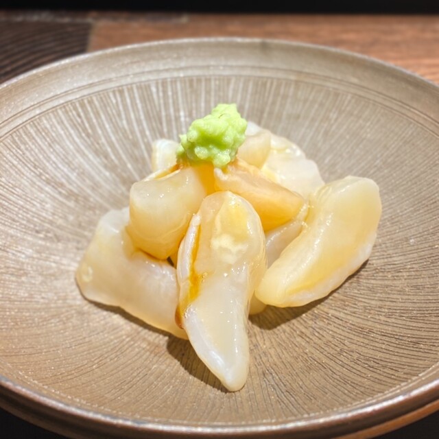 寝かせたイカのねっとりとした旨さと山山葵の辛さが心地いい。