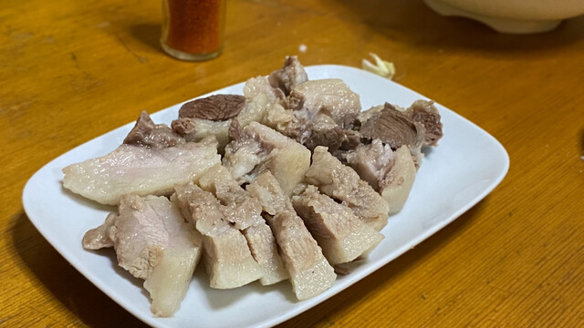 これはさっきのホッペと同様の茹で肉。