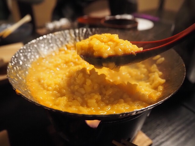 自分でご飯をセルフでよそって来て鍋にドボンしてリゾットを作る。