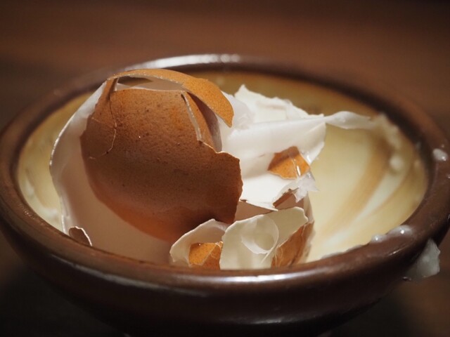 玉子の卵殻膜が強くて中々割れない!いい卵なんだろうなと思い聞いたら契約農家さんからの仕入れらしい。