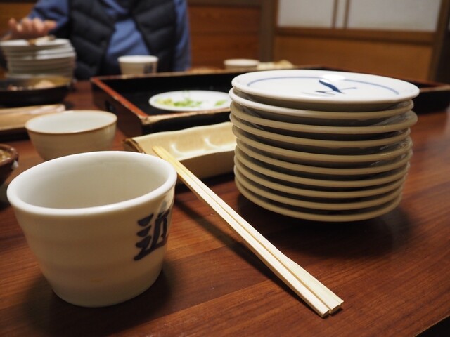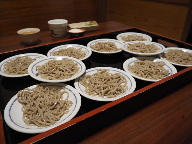 出石の皿蕎麦は、お皿を積み上げて、箸の高さの枚数を食べると、蕎麦通とされている。
