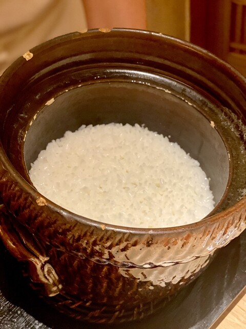 土鍋の蓋を開けると銀シャリが立ち上がる。