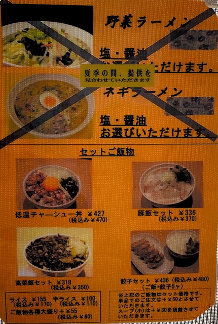 夏が終わり中断しているレギュラーの炒飯や野菜ラーメンもじきに復活するので、楽しみです。