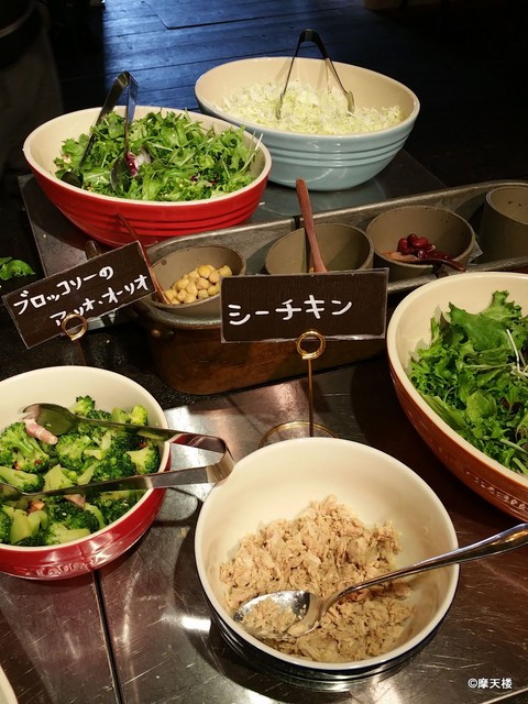 ・ランチはメインは2種類+ステーキから選択できる・ビュッフェ方式で種類が多いのでお腹いっぱい食べれる(昔に比べると少し種類が減ったかも。)・メインにしてもおかしくないものまであり満足感は高い・メイン料理はビュッフェに比べるとなんともで今回は鳥ハンバーグをチョイスしたが脂分が少ないので少しパサつき感があるように思えたらある意味ヘルシーなのかもしれない・箱が広い割にはお客さんが少なくて長居することもできる・通し営業なのでカフェとしても使うことが可能