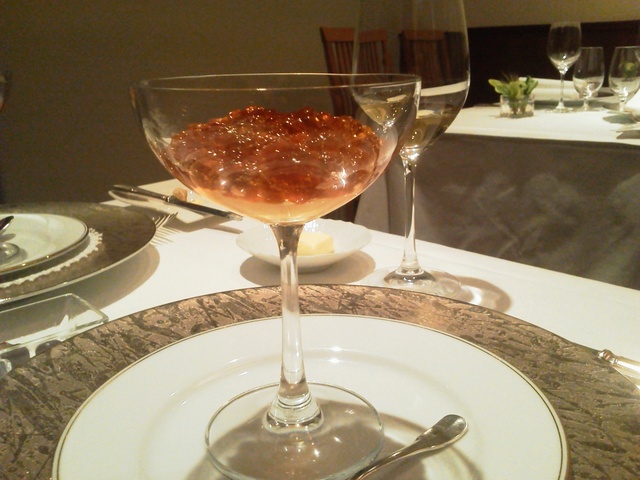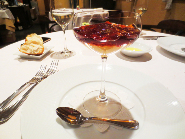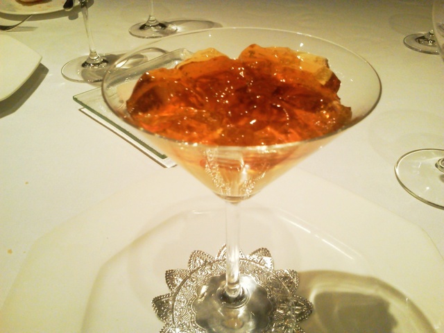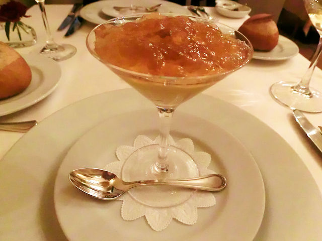 久しぶりの人参のムースとコンソメジュレ雲丹添え (2019/08/24)