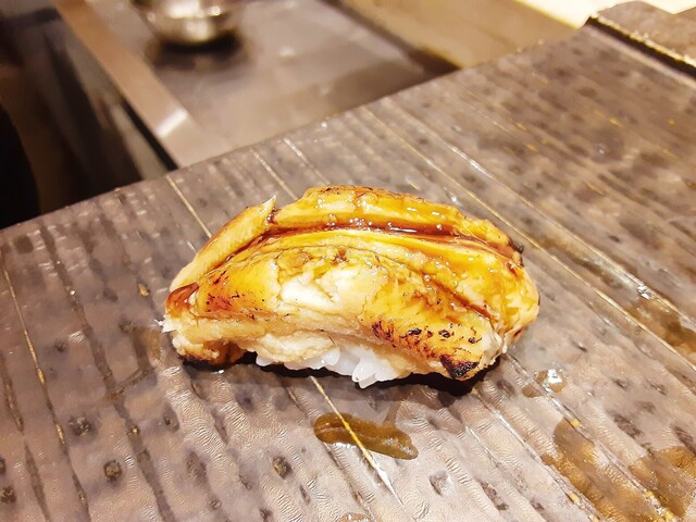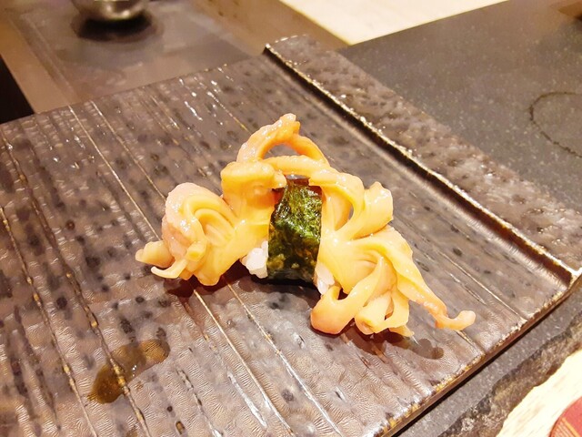 握りは小ぶりで江戸前の丁寧な技を施したもの。ギャップ大です。