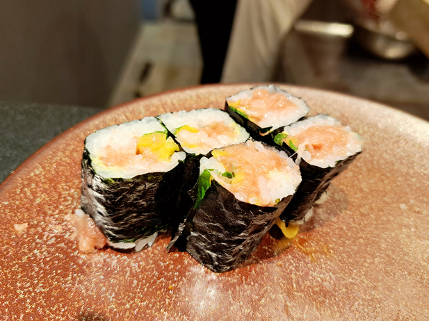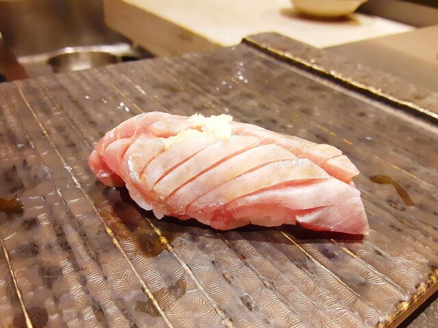 板場の真ん前の席だったのでそれに初めて包丁が入るのをかぶりつきで鑑賞。