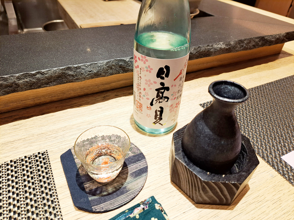 日本酒はシャンパングラス(?)のようなグラスでいただきます。