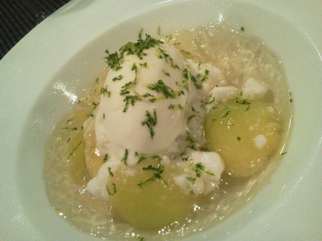 メロンのマリネ レモングラスのジュレとヨーグルトのジェラート