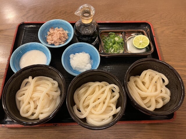 ここに来るたびに夫婦揃って同じものばっかり頼んでます。ワタシは三つ盛生醤油うどん、ヨメさんはカレーうどん(キーマじゃない方)