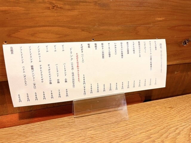奥のテーブル席に案内される。メニューを見てると十割蕎麦は売切れとのこと。あら残念。
