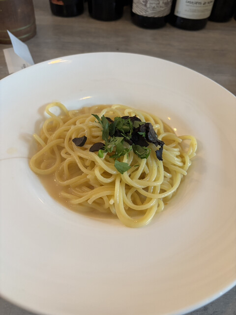 サラダが山盛りで大満足♪パスタももちもち食感でトリュフたっぷりで美味しかったです。