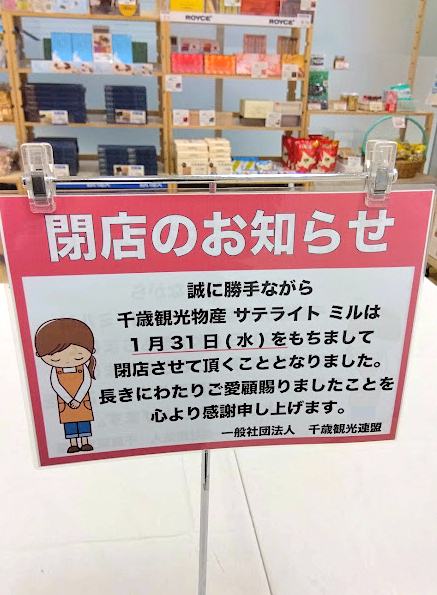 千歳観光物産サテライト ミル 閉店します (2024/01/05)