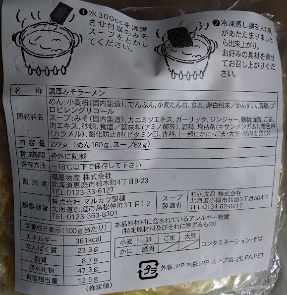 北海道風あわせ味噌ラーメン 1食×2 1,480円