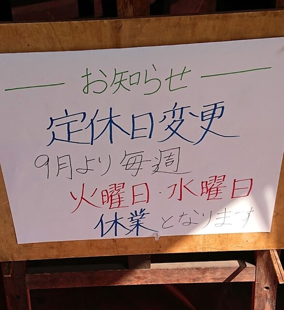 毎週 火曜日/水曜日 定休日 2022/09