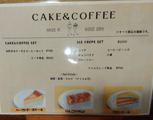 食事と一緒だとコーヒー(ホットもアイスも通年あり)とミルクが180円です。