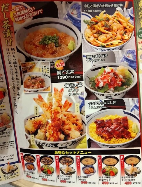 連れの海老天丼は海老3本・レンコン・アスパラ