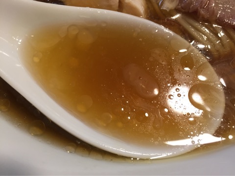 薄めの豚ロースレアチャーシューは、生ハムのようなしっとりとした食感が実に心地よく、噛めば噛むほど溢れ出す凝縮された肉の旨みに、醤油ベースの極上スープが実によくなじんで、たまんな~い!