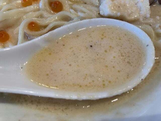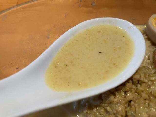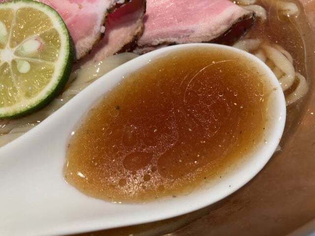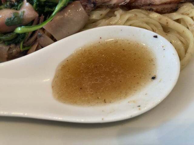 煮干しと烏賊の香りが優しく鼻を抜けていくとともに、煮干しの大人でビターな風味と旨みと烏賊の風味と甘みが口の中に広がって、これだけでも旨すぎるっ!