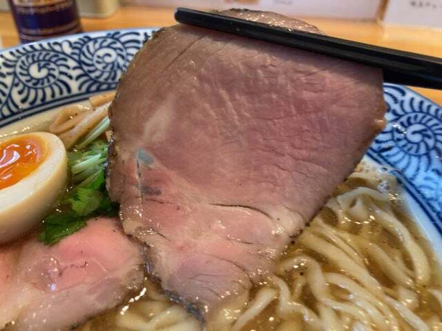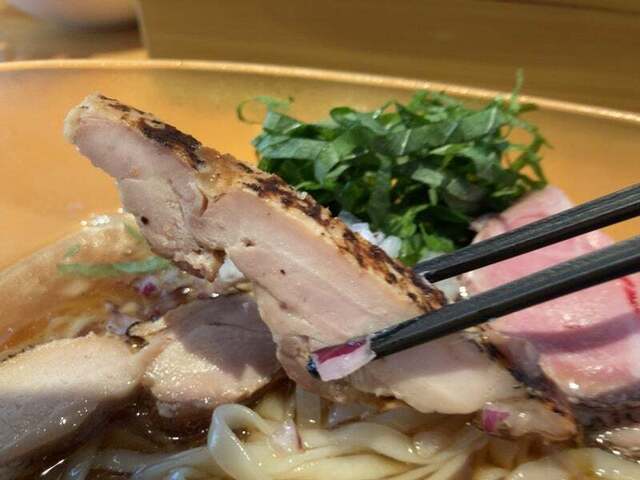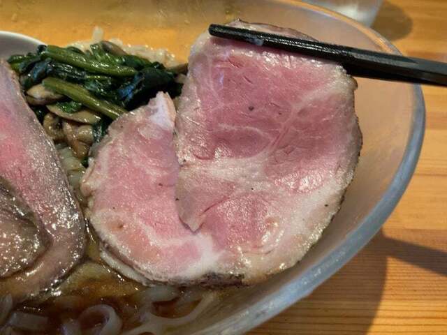豚ロースレアチャーシューは、しっとり食感が心地よく、噛めば噛むほど肉の旨みと甘みがジュワ~と溢れ出し、"飲む“秋刀魚スープと絡みに絡んで、めっちゃウマウマ~!