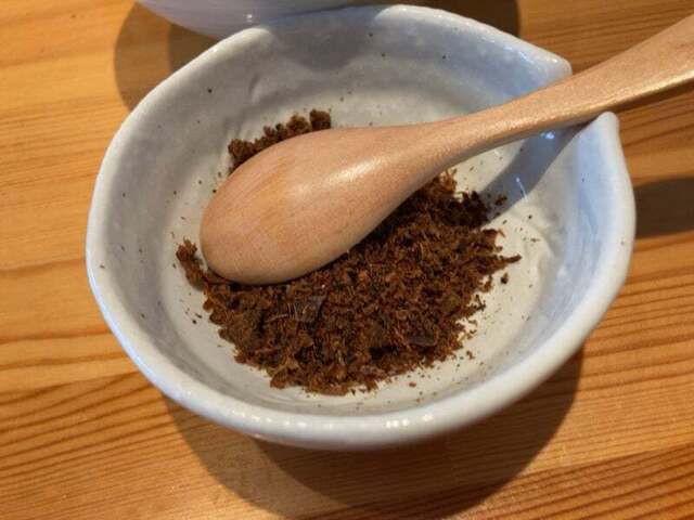 ご飯を注文すると一緒に提供される鰹節メインの自家製ふりかけは、すぺ千三百の儀式に欠かせなくなってます。