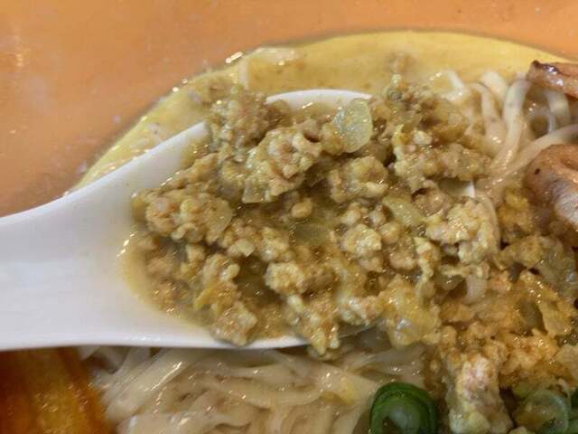 キーママター(鶏ひき肉)は、甘みとスパイス感があって、噛めば噛むほど鶏肉の旨みが口の中に溢れ出し、次第にスープに溶け出して、めっちゃウマウマ~!