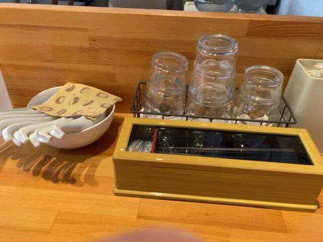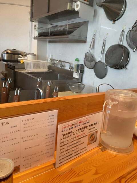 女将さんはお客の案内をしてたので、代わりに厨房の店主がオーダーを聞いてくれて、私は『にぼしらぁ麺(900円)』か『にぼしブラウン(950円)』かすごく悩みつつ、『にぼしらぁ麺(900円)』をチョイスし、嫁さんはブレずに『MISOらぁ麺(950円)』に“味玉(100円)”トッピング、そして“ご飯(自家製ふりかけ付)(並、100円)”×2を注文しました。