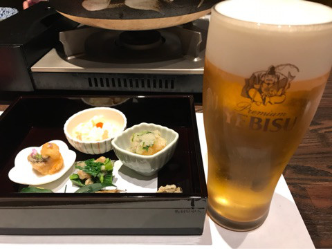生中2杯をグビグビッとやりながら季節の前菜をいただきます。