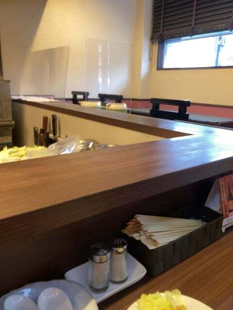 【入店時にお使い下さい】ということで、入り口にある消毒用アルコールで手を清めてから、入店して“チャーハン(唐揚げ付き、600円)”を注文しました。