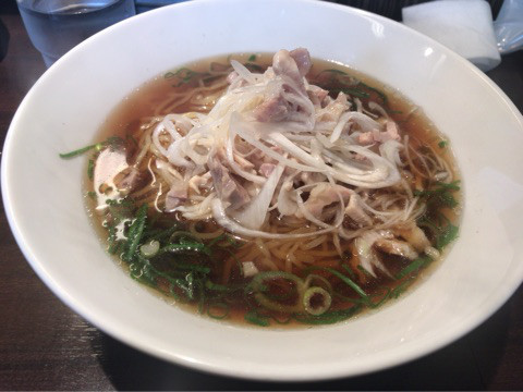 しばらくして、澄みきったスープの上に、刻んだ鶏肉、そぎ切り白ネギ、刻み青ネギがシンプルに盛り付けられた“鶏ネギ中華そば”がやってきました。