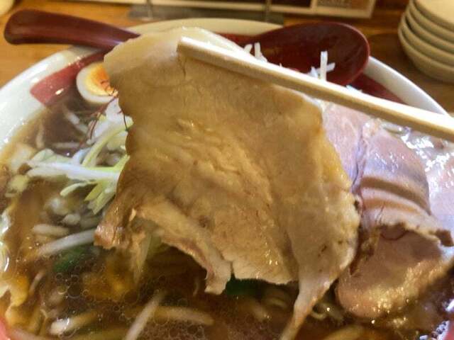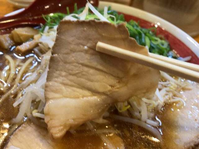 肉厚な豚バラチャーシューは噛み応え十分で、口の中に肉の旨みと脂身の甘みが広がって、すご~く美味しい!