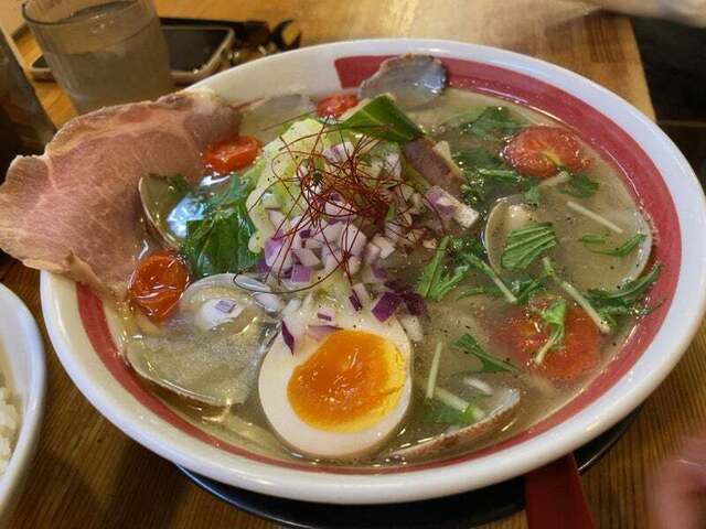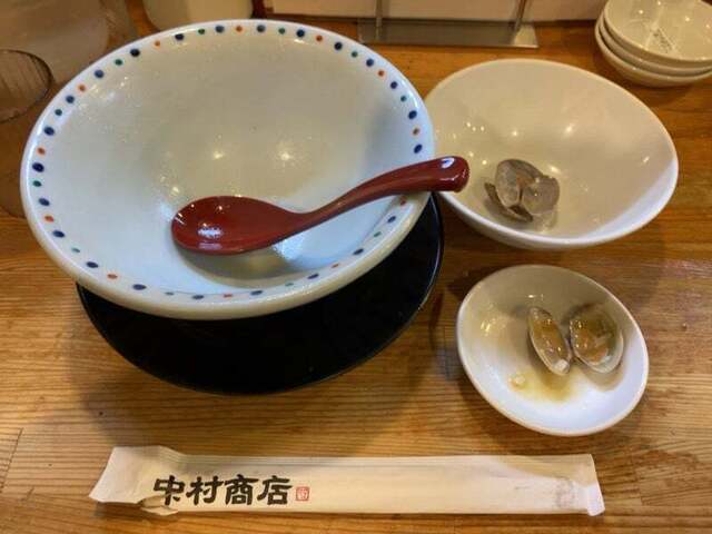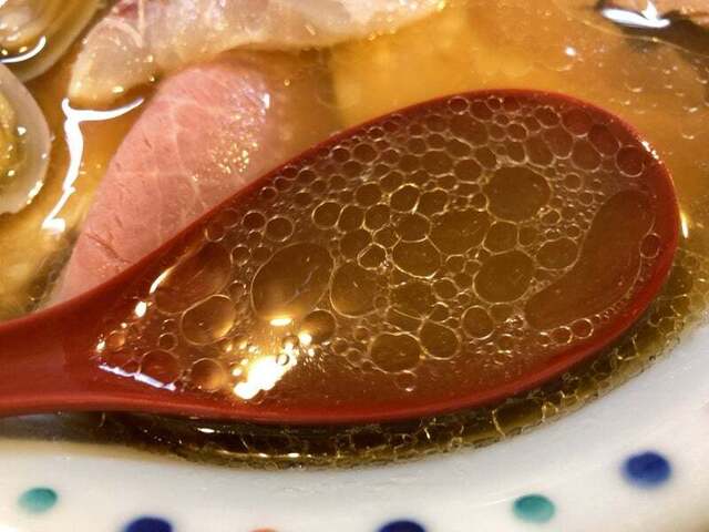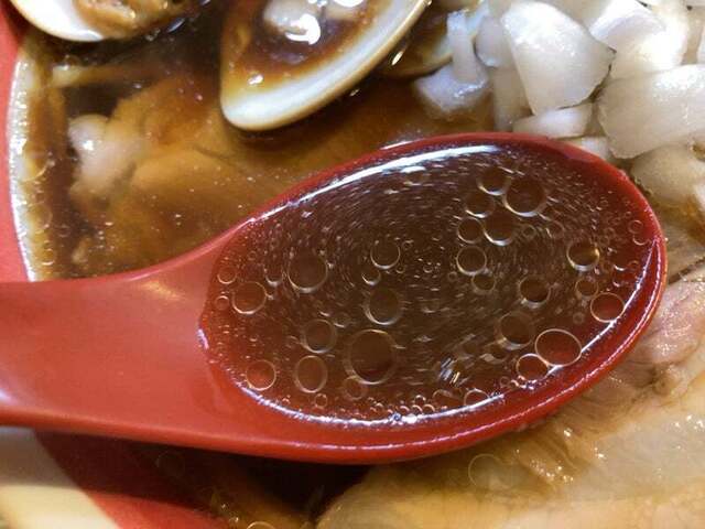 それではさっそく、王道和風醤油スープを一口いただくと、アサリと醤油の芳醇な薫りが鼻を抜けた瞬間、岡崎の実家で慣れ親しんだ赤味噌を使ったアサリの味噌汁を飲んでるかの感覚になる!