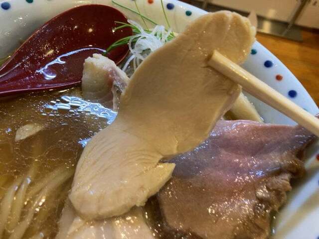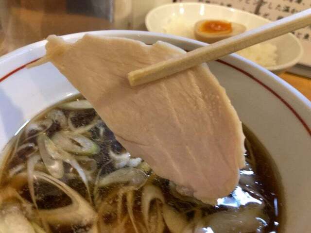 鶏ムネチャーシューは、しっとり食感が心地よく、噛めば噛むほど肉の旨みが口の中いっぱいに溢れ出し、めっちゃ旨~い!