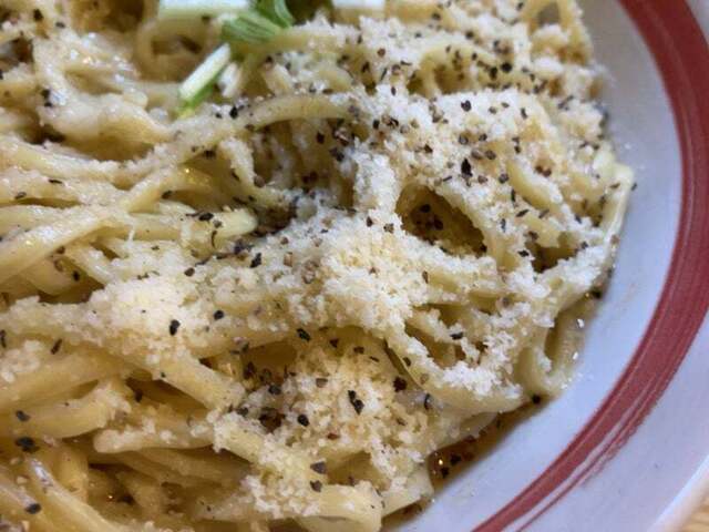 きんせいグループ専用粉“夢の風”を使用した自家製中太平打ちストレート麺は、小麦の風味豊かで、コシが強く、プリモチ食感と、麺肌滑らかでツルツルッとした喉ごしの良さがなんとも心地よく、味噌ダレと炙りチーズと絡みに絡んで、かな~り旨い!