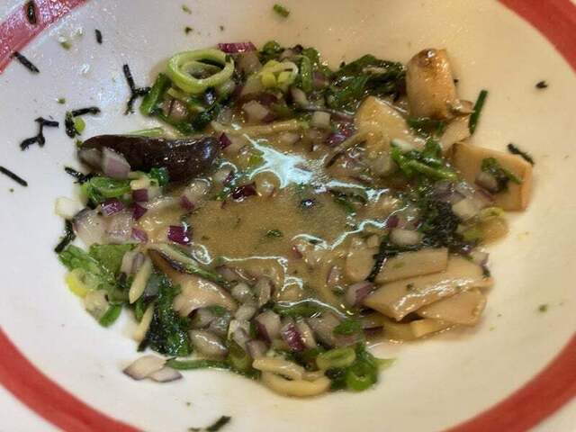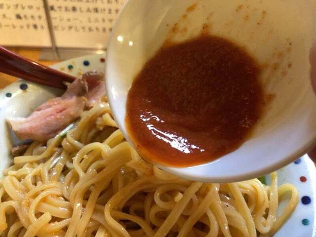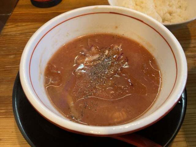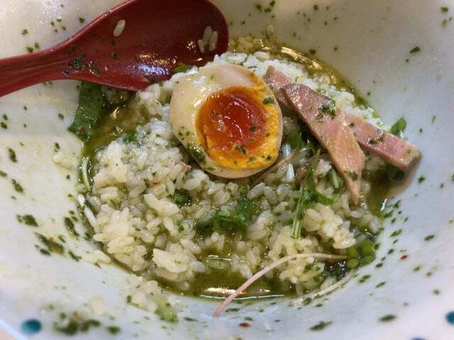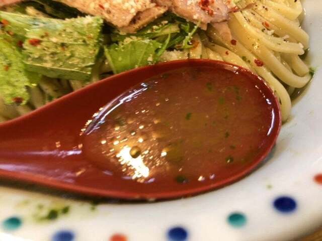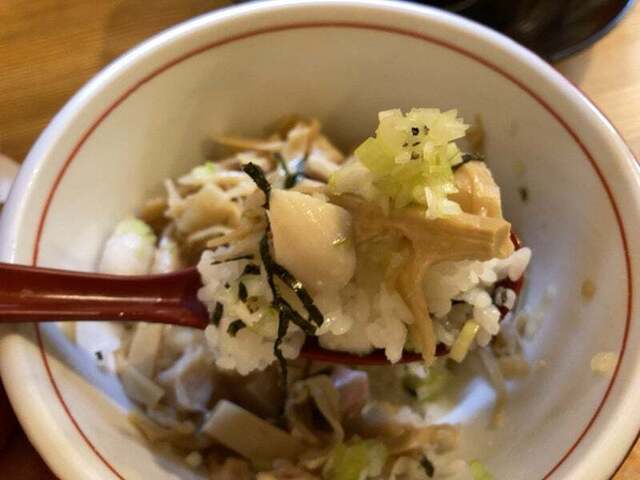 麺を食べ終えたら、残った鶏貝出汁塩つけ汁めがけてのぉ~