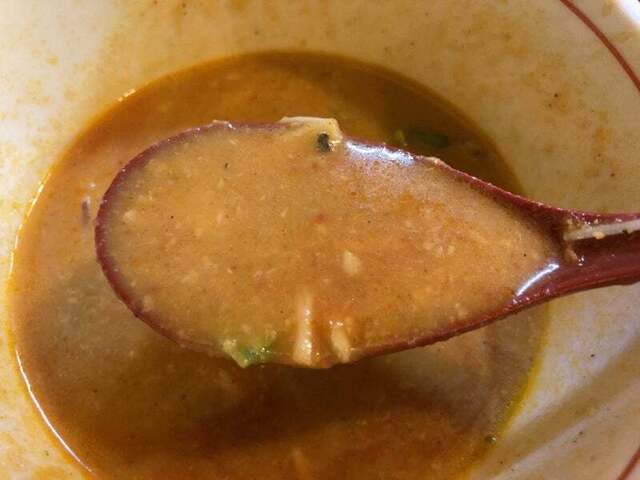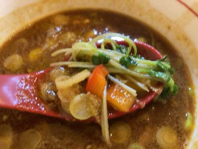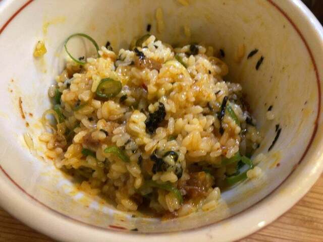 麺を食べ終えるとイイ感じで、味噌ダレとトッピング類が残っています。