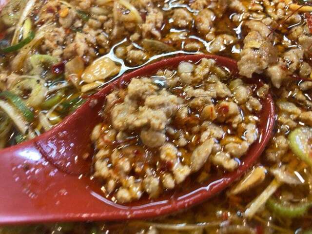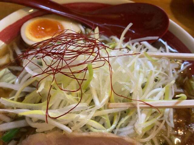 ほどよく味付けされたメンマのコリコリ食感、カイワレのシャキシャキ食感、粗みじんアーリーレッドのザクザク食感、糸唐辛子の風味がアクセントになって、めっちゃイイ感じ!