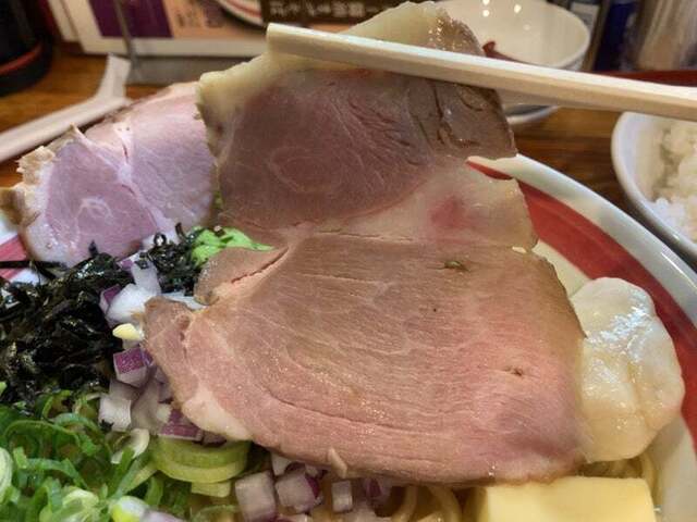 豚バラチャーシューは噛めば噛むほど肉の旨みと脂身の甘みが口の中に広がって、めっちゃまいう~!