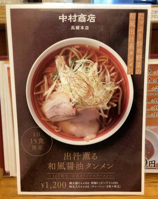 テーマ『店長オリジナル』の12月限定は今村店長が繰り出すタンメン!『中村商店高槻本店230』まいどでござる(。・_・。)ノ