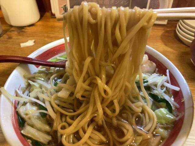 きんせいグループ専用粉“夢の風”を使用した自家製中太平打ちストレート麺は、小麦の風味豊かで、しなやかなコシに、モチモチッとした食感と麺肌滑らかでツルツルッとした喉ごしのよさがなんとも心地よく、王道和風醤油スープとなじみになじんで、かな~り旨い!