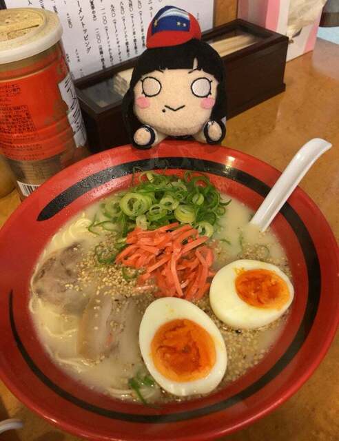 今日のお昼は、いつもの“京都背脂チャッチャ”ではなく、博多長浜豚骨系が食べたくなって、「元祖京都らーめんゑびす屋」へ、梨子ちゃん@Aqoursの寝そべりぬいぐるみとともにやってきました。