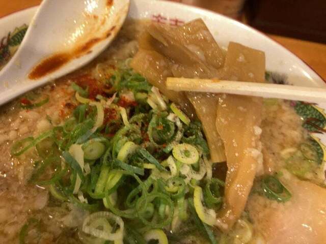 そして、幅広なメンマのコリコリ食感と刻み青ネギの風味とザクザク食感がなんとも心地よく、スープに浸していただくと、めっちゃイイ感じ!