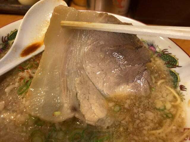 大ぶりのチャーシューが3枚もトッピングされていて、チャーシュー追加する必要がないぐらいです。大ぶりですが、味もしっかりして、柔らかく、いい感じです。