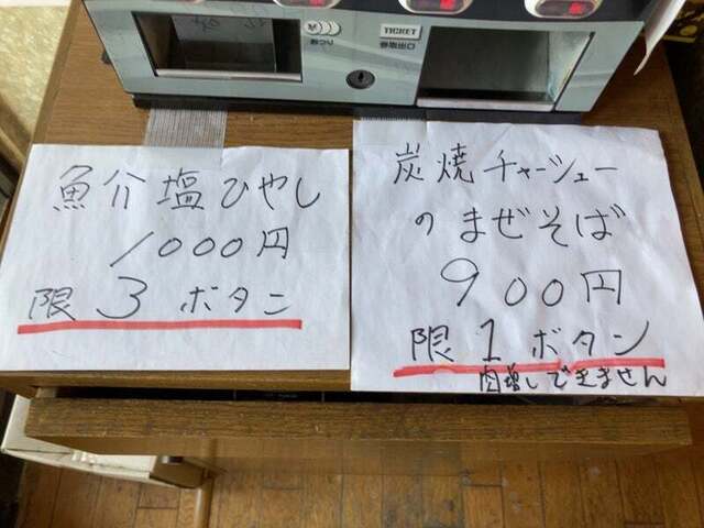 というわけで、券売機左上の『魚介しお(900円)』の食券ボタンをポチッとな!