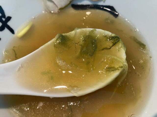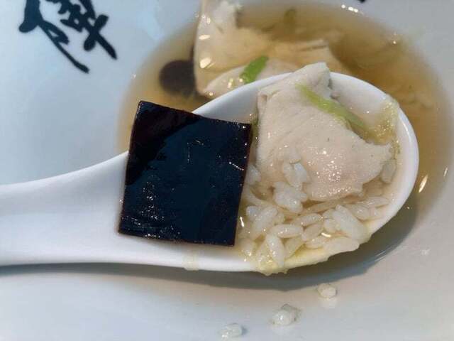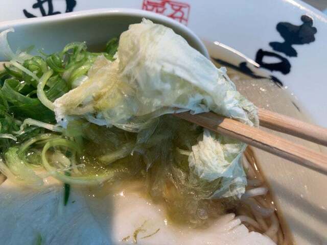 麺を食べ終えたら、さらに追加で提供されたおぼろ昆布をスープに追い投入して、少ししゃぶしゃぶしてからいただくと、おぼろ昆布の繊維食感が心地よく、昆布の薫りが引き立って、より一層スープがコク深くなって、味変大成功~!