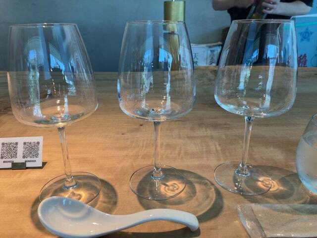 そして10分前になると、2階の『昆布と麺喜一』へ案内され、すでにワイングラスなどがセッティングされたカウンター席に着きます。